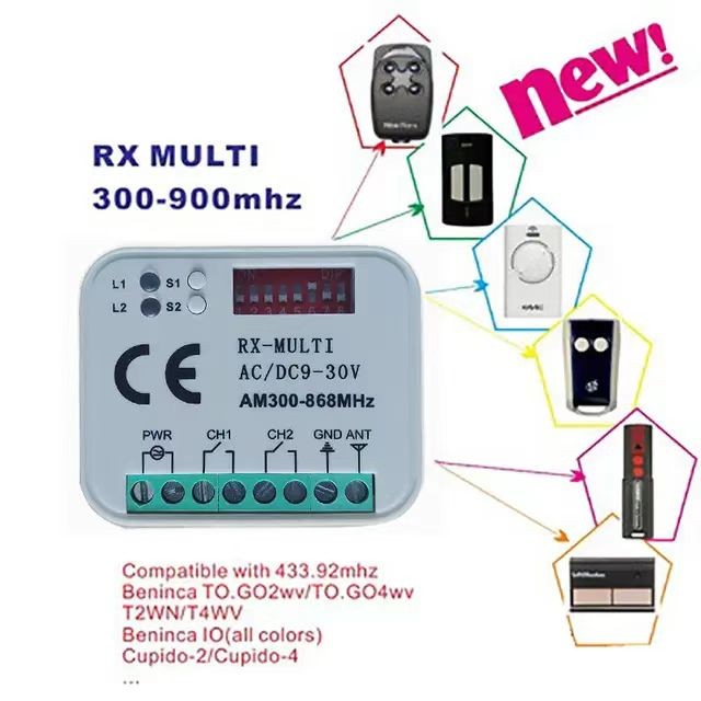 Gate remote control system Receiver rolling code fixed code multi-frequency remote control receiver switch 300MHz-868MHz